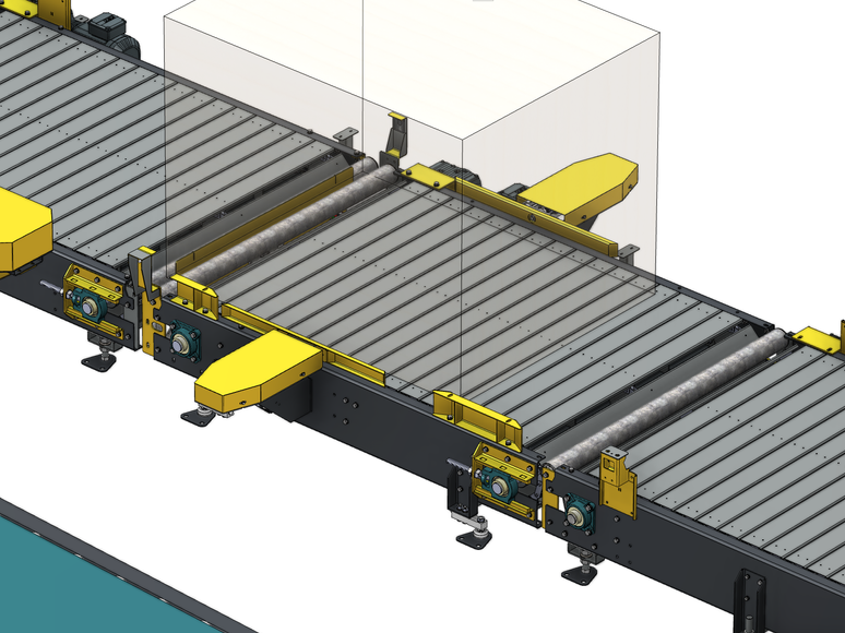 Taşıma sistemi, kauçuk briketlerin taşıma kaplarına paketlenmesini otomatikleştirmek için geliştirilmiştir.